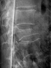 This radiograph is from an elderly woman who accidently fell down a flight of stairs. She has had persistent back pain since that time. Each student should add one piece of information to this case. It can be to describe normal or abnormal things on the radiograph, a finding about whatever you think the diagnosis of this radiograph is, what is a symptom, or what you would do during physical examination. Each blog post should be a different piece of information to lead us toward an accurate diagnosis.